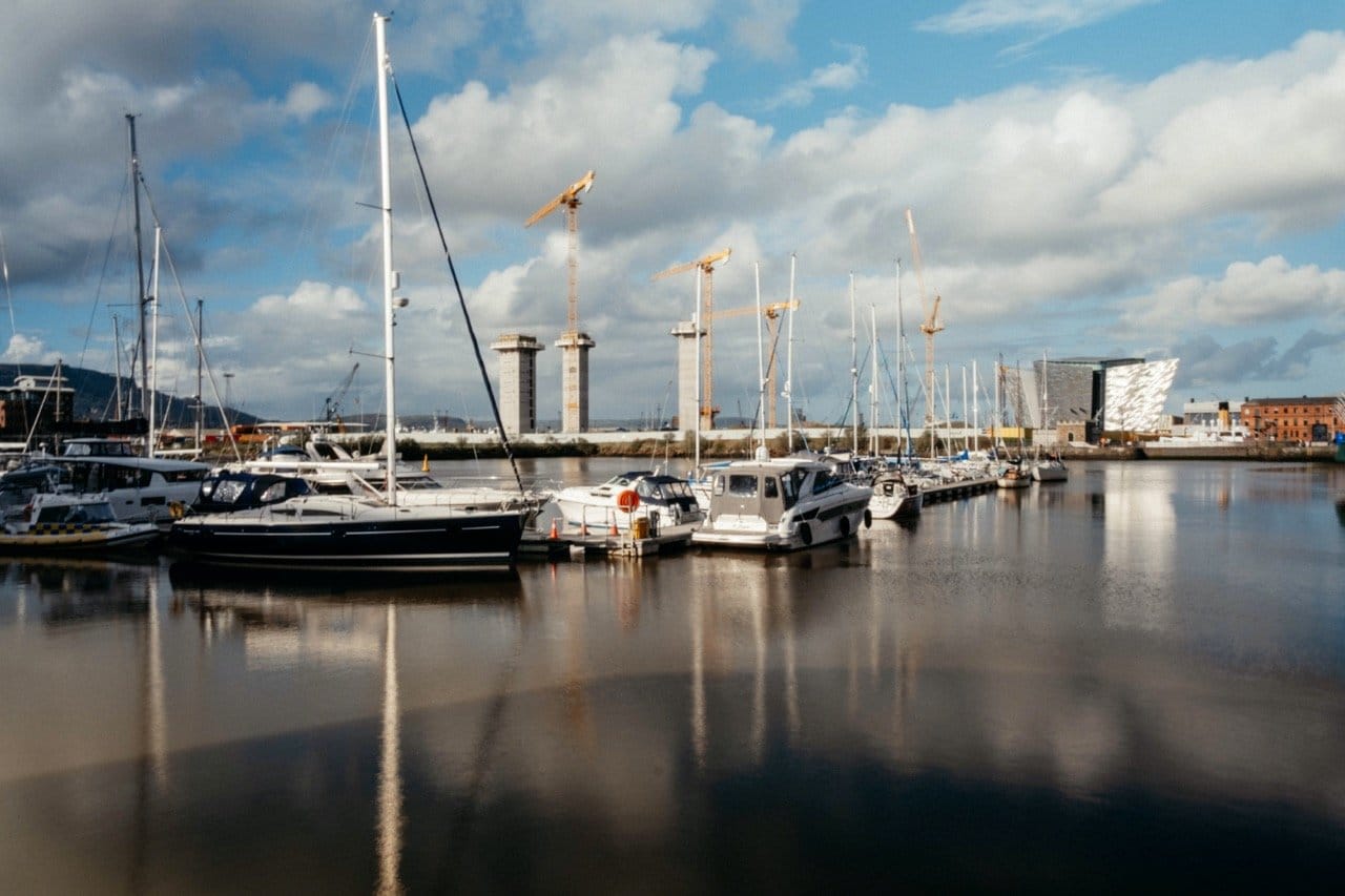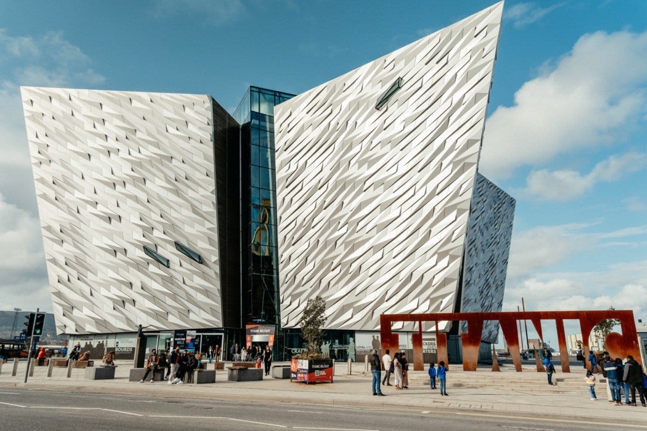 4. Am Hafen entlangspazieren: Seit langer Zeit werden in Belfast Schiffe gebaut. Und eines davon war die Titanic. Darauf sind die Bewohner:innen besonders stolz. Das Visitor Center von Titanic Belfast gehört zu den bekanntesten Attraktionen der Stadt. Es macht aber auch schon Spaß, von der Innenstadt aus ins Titanticviertel zu schlendern und den Vibe zu genießen, der fast schon an Hamburg erinnert.