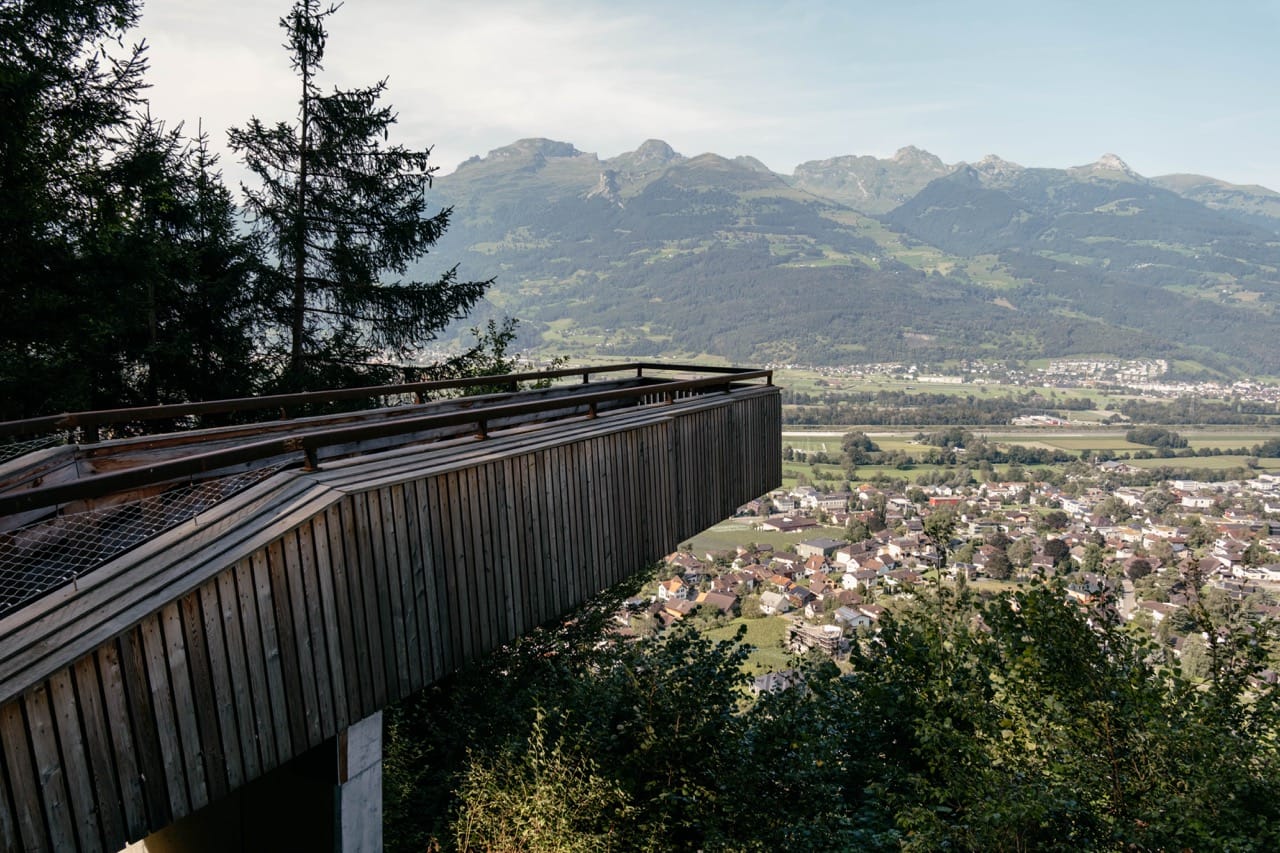 Wie Schlösser? Ja genau! Das Schloss Vaduz thront oberhalb der Stadt und ist für Besucher:innen nicht zugänglich, da hier die Fürstenfamilie wohnt. Es lohnt sich aber dennoch den ausgeschilderten Fußweg von der Innenstadt zum Schloss zu nehmen und den herrlichen Ausblick auf Vaduz und die Berge zu genießen. Oben angekommen, eignet sich eines der Bänkchen im Quadratschaweg für ein Päuschen mit Blick auf das Schloss. Läufst du den Weg weiter, gelangst du zu einem Walderlebnispfad, der sich noch weiter den Berg hoch schlängelt. Nach etwa 20 Minuten erreichst du eine schöne Aussichtsplattform, die dir einen wunderbaren Weitblick auf Liechtenstein ermöglicht. Wer sich weiter sportlich betätigen will, gelangt nach ungefähr einer Stunde zum Wildschloss. Die Strecke ist übrigens auch sehr beliebt bei Mountainbikern. Vom Wildschloss aus dem 14. Jahrhundert ist nicht mehr so viel übrig. Was aber dennoch toll ist: Hier gibt es einige Grillstellen, Holz wird sogar zur Verfügung gestellt. Übrigens ist das auch ein absoluter Geheimtipp, um zu genießen, wie die Sonne hier in den Bergen untergeht.